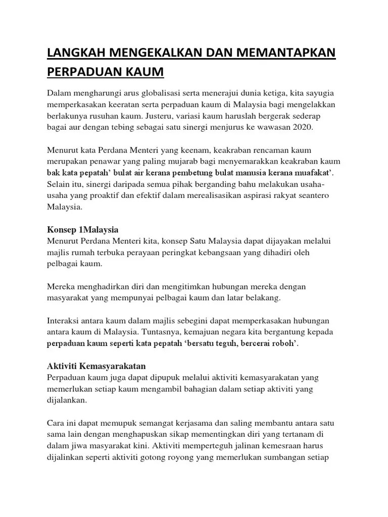 Doc cabaran dan langkah langkah pihak . Usaha kerajaan untuk mengukuhkan perpaduan. Esei contoh pengajian am 2 1 doc document. Para pelajar lazimnya menghadapi kesukaran untuk menjawab soalan karangan bahasa melayu.